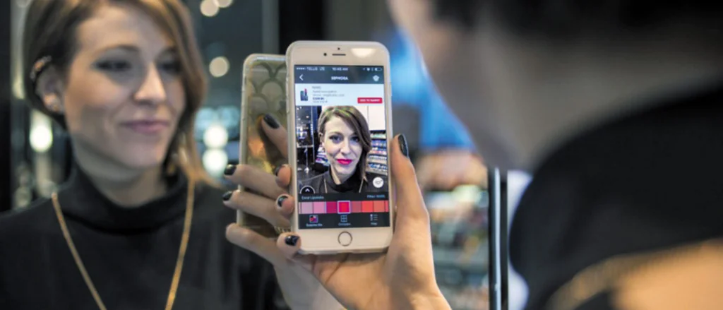 (Fonte: Isto é dinheiro) Marcas como a Sephora lançaram o aplicativo Virtual Artist, permitindo que os usuários experimentem produtos de maneira virtual.